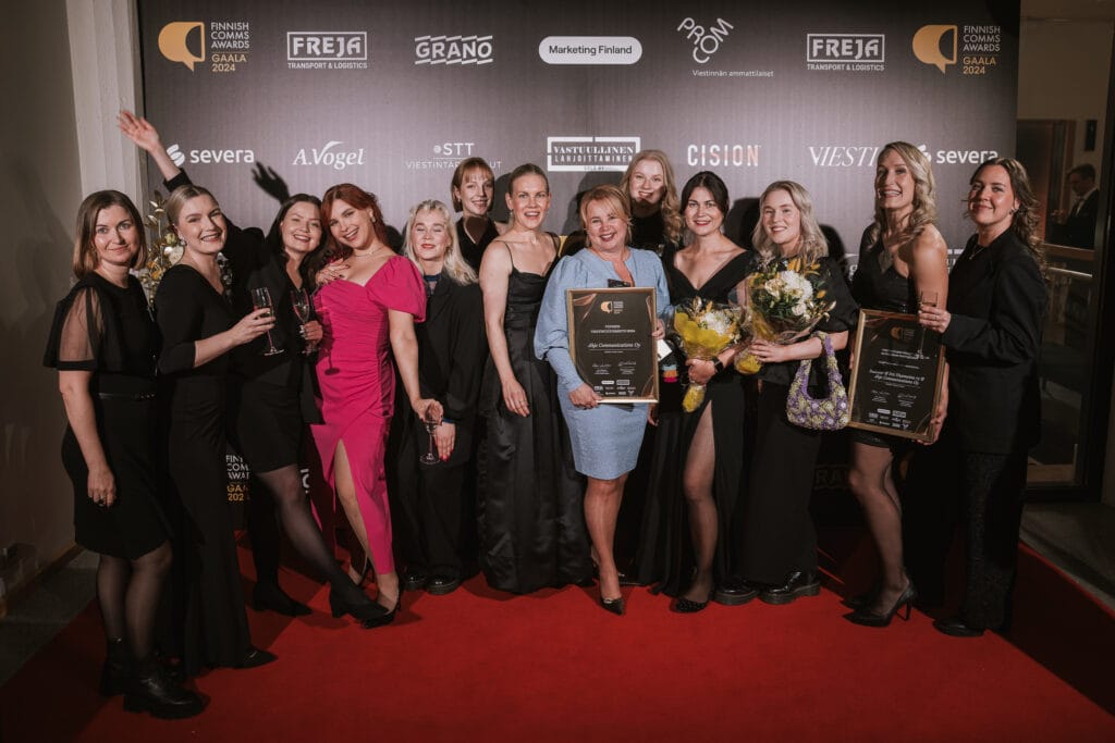 We are so proud and happy! Ahjo was awarded the PR Agency of the Year 2024 -award of Finnish Comms Awards by Marketing Finland. This highly prestigious award is voted by the jury of the competition and is given to an agency that has shown impact, growth and financial stability.