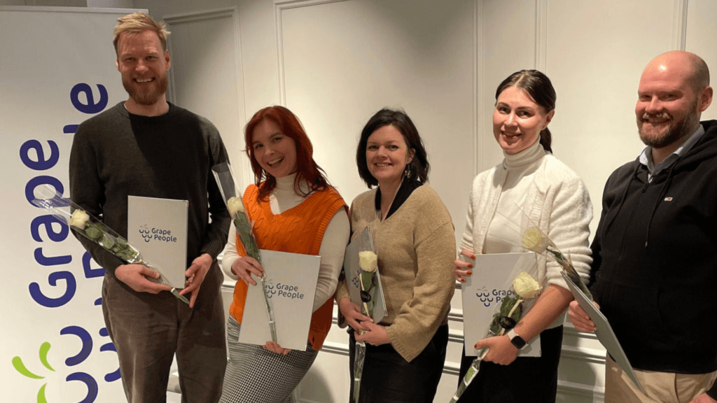 Tiimimme on jälleen ottanut merkittävän askeleen kohti entistä parempia asiakaskokemuksia ja vaikuttavampia viestinnällisiä ratkaisuja. Asiantuntijamme Eva Torra, Laura Vuorio-Kuokka ja Sanni Kurvinen ovat saaneet Grape Peoplen arvostetun Sertifioitu fasilitaattori -tunnustuksen, joka osoittaa heidän kykynsä suunnitella ja johtaa osallistavia, tasa-arvoisia, tehokkaita ja tavoitteellisia tilaisuuksia.